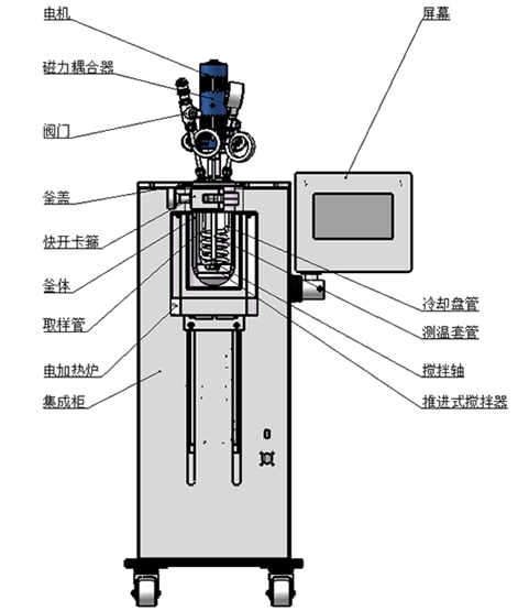 產(chǎn)品功能和特點(diǎn):升降型式,機(jī)電一體化設(shè)計(jì)、結(jié)構(gòu)緊湊;框架支撐結(jié)構(gòu),配腳輪方便移動(dòng);主體可快開設(shè)計(jì),開閉釜操作方便、快捷;升降輔助機(jī)構(gòu)方便操作,手動(dòng)/電動(dòng)可選;高扭矩磁力傳動(dòng),配優(yōu)選電機(jī),提升運(yùn)行穩(wěn)定性;攪拌支持定制槳葉類型,適配多樣化攪拌需求;加熱爐傳熱快,均熱效果好,效率可調(diào);真彩色觸控屏,模塊化顯示,控制界面操作簡(jiǎn)潔;支持遠(yuǎn)程控制,具備RS485通訊口,配上位機(jī)軟件;可顯示工作時(shí)間/溫度/轉(zhuǎn)速/壓力,PID自整定控溫精準(zhǔn);具備安全連鎖功能,超溫超壓報(bào)警;具備數(shù)據(jù)采集,記錄以及報(bào)表導(dǎo)出功能;支持選配加料、計(jì)量、取樣、冷凝等擴(kuò)展功能。